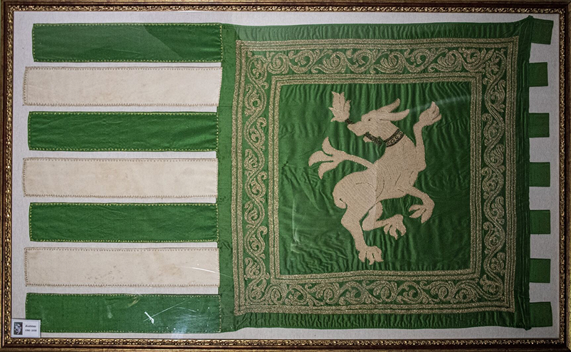 Il fedele cane ritrovò le ossa e Frate Vincenzo poté esaudire il desiderio del soldato. Al posto di una lapide pose due ossa sul prato della Collegiata. Così le strisce bianche sul fondo verde rimasero come emblema perenne della pace riconquistata dalla Contrada di San Domenico.